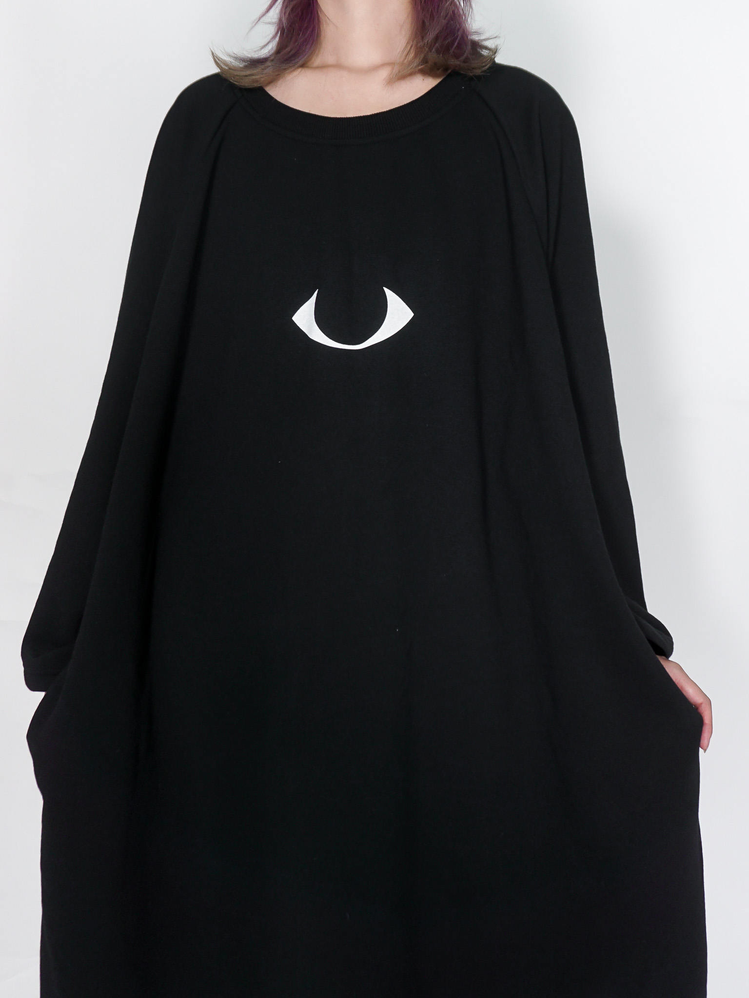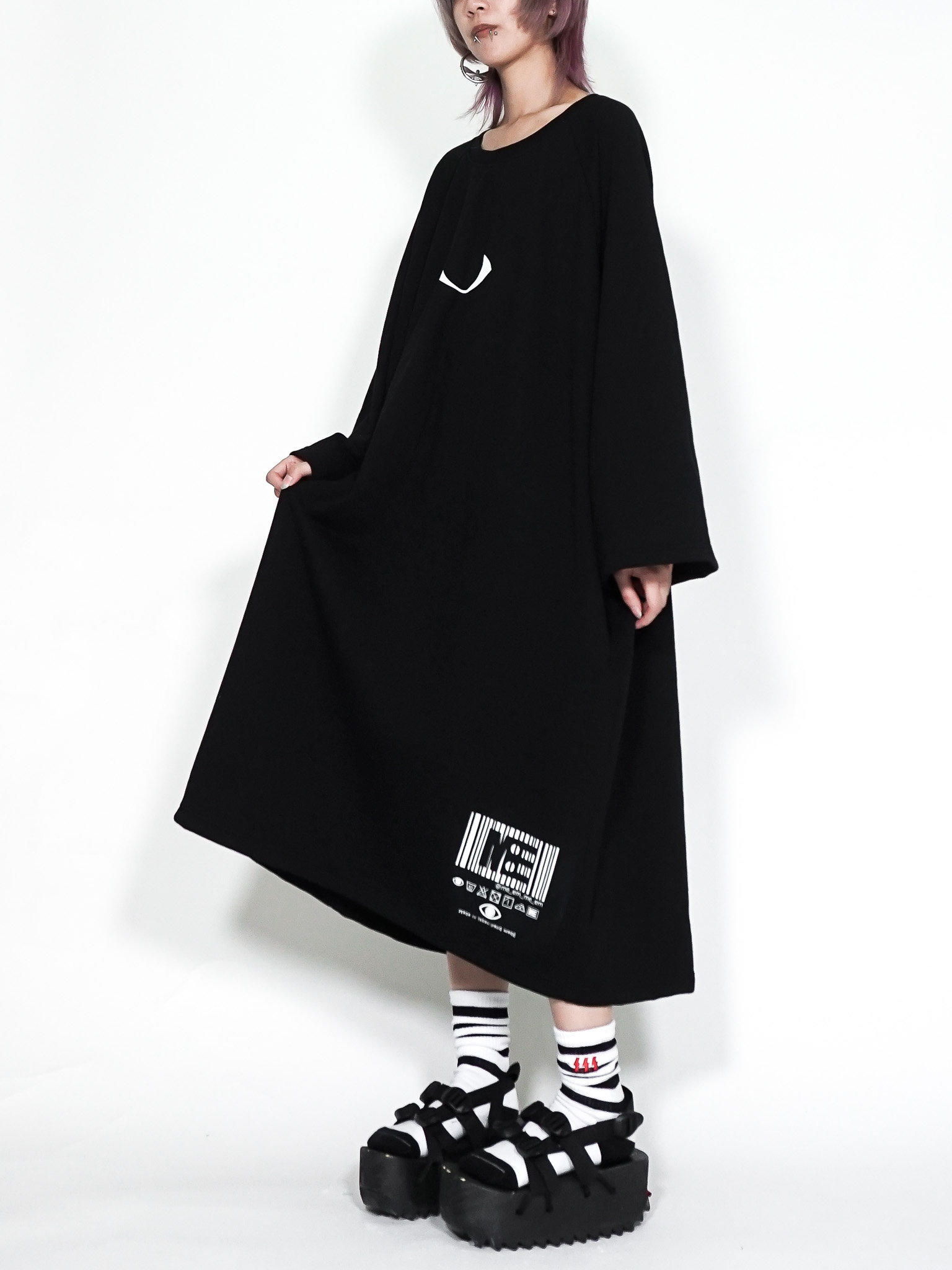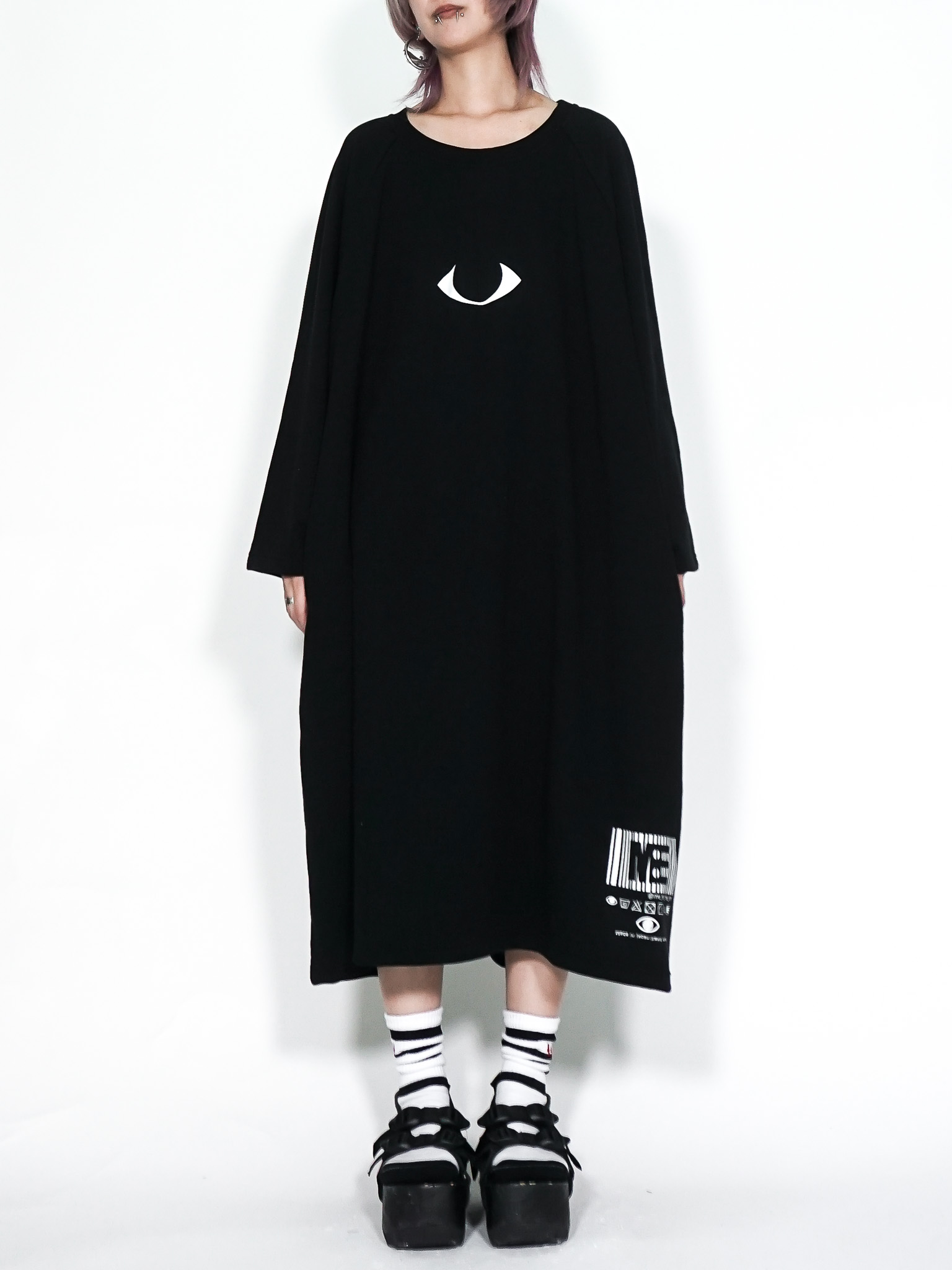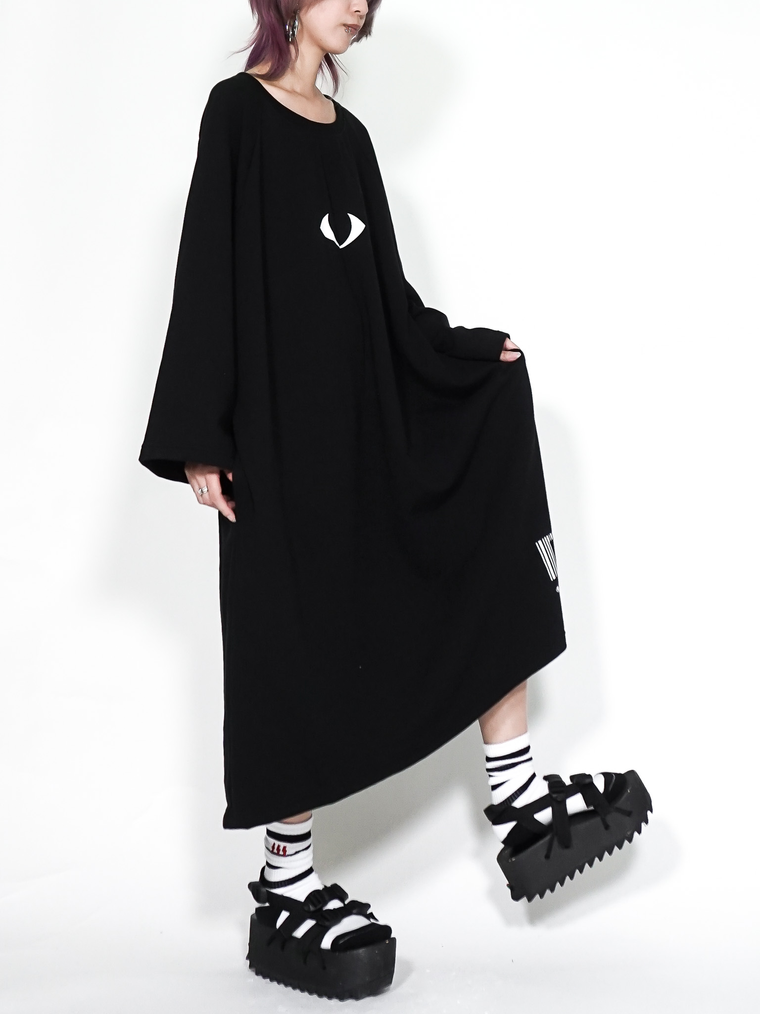 ※M:Eの目のデザインを胸元にプリントしたオーバーシルエットのずるずるワンピース、