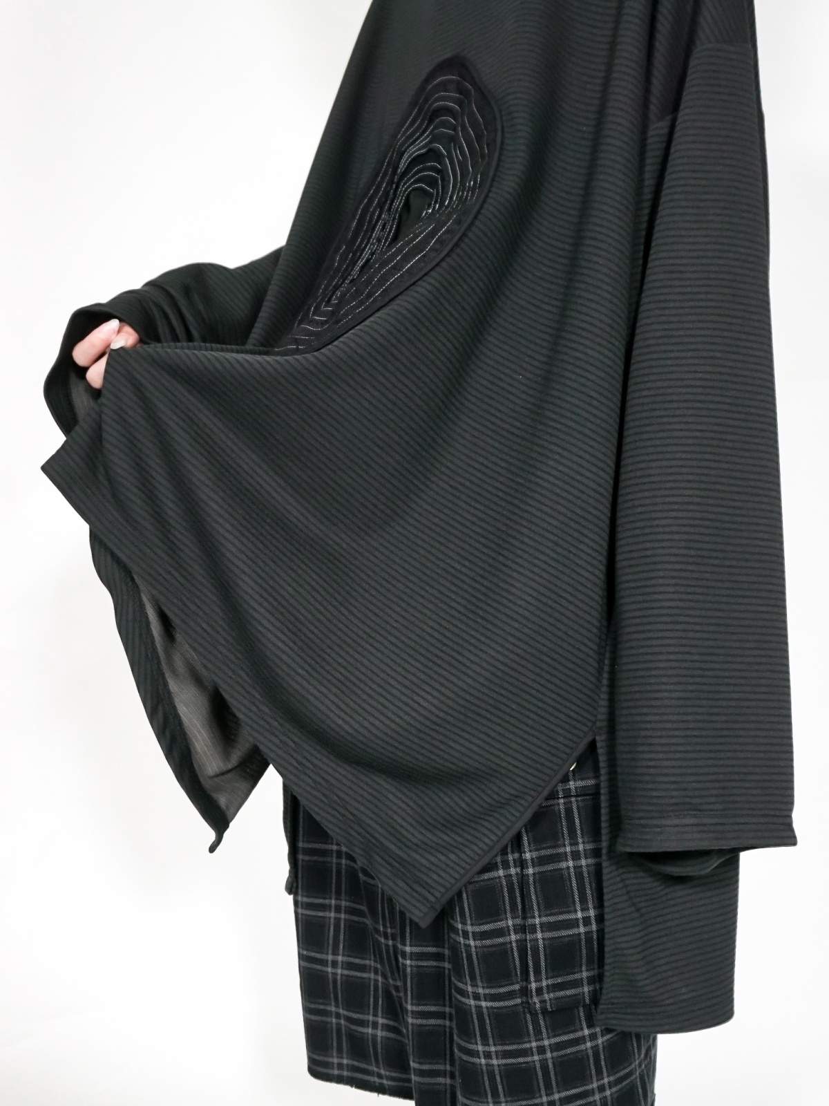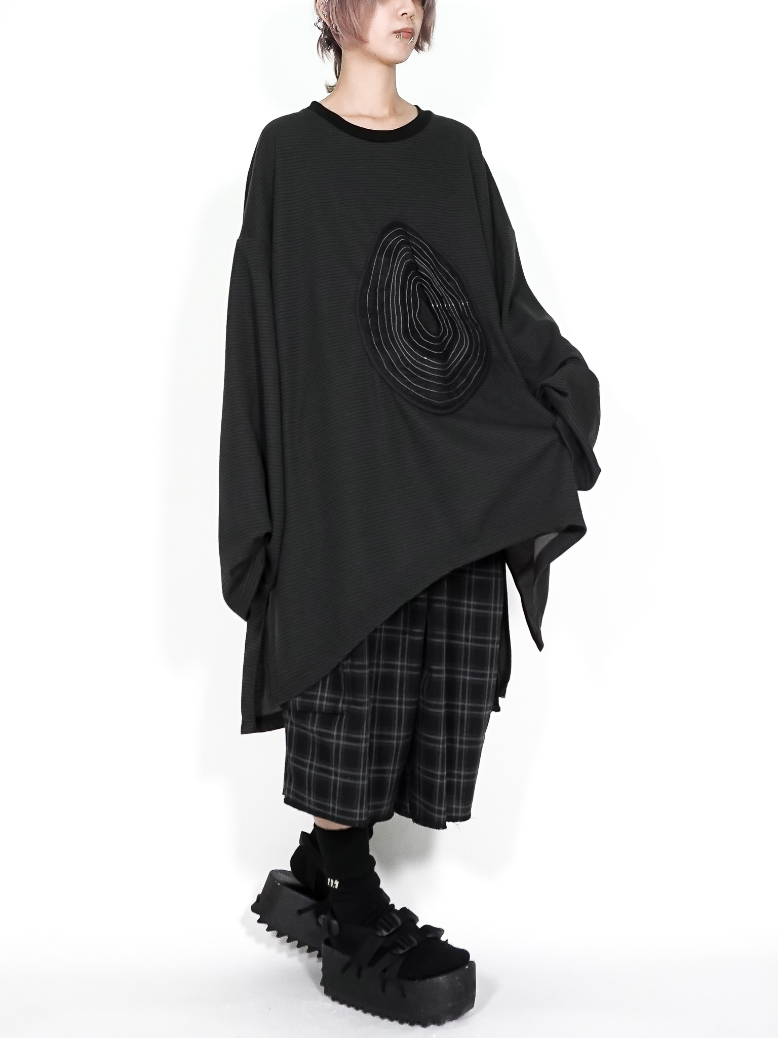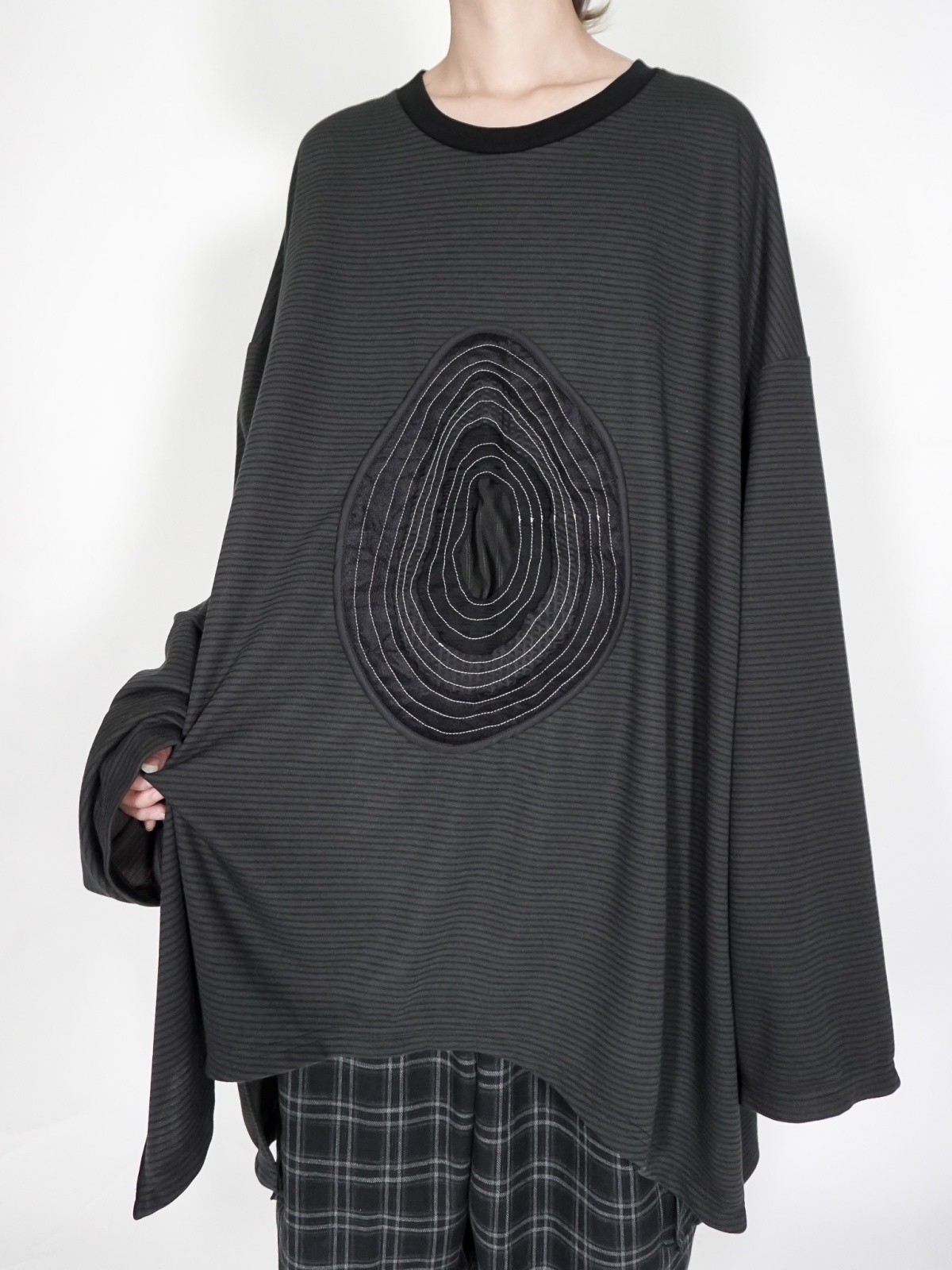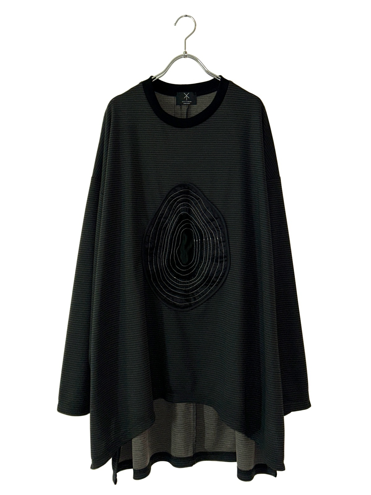 中央には、数種類の異素材生地で製作した「Trace」コンセプトのモチーフが縫い付けられています◎